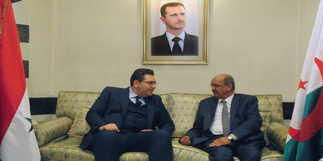 بحث وزير الاقتصاد والتجارة الخارجية الدكتور همام الجزائري مع وزير الشؤون المغاربية والاتحاد الأفريقي وجامعة الدول العربية في الجزائر عبد القادر مساهل الذي بدأ زيارة إلى سورية اليوم سبل تعزيز التعاون بين البلدين في مختلف المجالات.