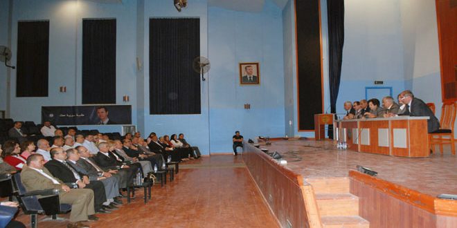 بدوره بين أمين فرع حماة لحزب البعث العربي الاشتراكي مصطفى سكري ضرورة تعزيز التواصل بين الإدارة الجامعية وأعضاء الهيئة التدريسية والتعليمية والطلبة مؤكدا حتمية انتصار سورية على الإرهاب.
