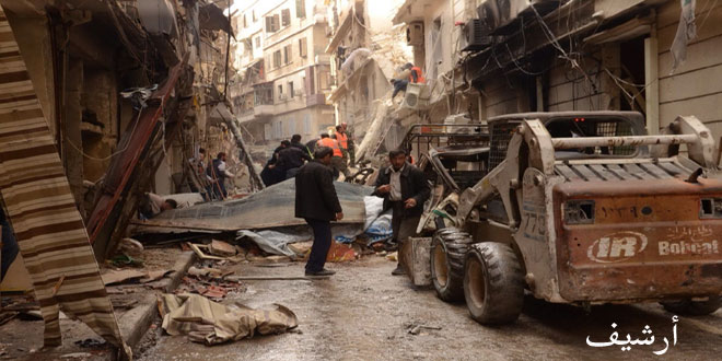 وتسببت الاعتداءات الإرهابية بالقذائف الصاروخية والهاون على الأحياء السكنية في مدينة حلب خلال الـ 48 ساعة الماضية بارتقاء 10 شهداء وإصابة عشرات الأشخاص أغلبهم من النساء واللأطفال.