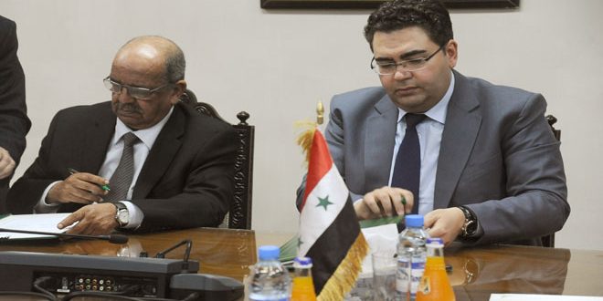 وقع وزير الاقتصاد والتجارة الخارجية الدكتور همام الجزائري ووزير الشؤون المغاربية والاتحاد الإفريقي وجامعة الدول العربية في الجزائر عبد القادر مساهل المحضر الختامي لاجتماعات لجنة المتابعة السورية الجزائرية والتي تضع الإطار العام للتعاون المشترك بين البلدين في جميع المجالات ولاسيما التجارية والصناعية والعلمية.