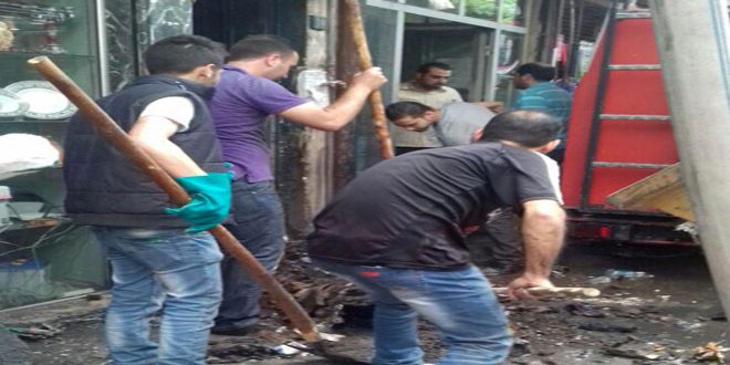 باشرت مديرية الخدمات الفنية وفوج الإطفاء وعدد من الفرق التطوعية والجمعيات الأهلية في محافظة دمشق بترحيل الانقاض وتنظيف سوق العصرونية الذي تعرض أول أمس لحريق أدى إلى وقوع أضرار كبيرة في المحال التجارية.