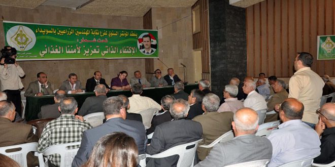 دعا أعضاء فرع نقابة المهندسين الزراعيين بالسويداء خلال مؤتمرهم السنوي اليوم إلى وضع حد لارتفاع تكاليف الإنتاج الزراعي وزيادة دعم المزارعين وتوفير مستلزمات مشروع التنمية الزراعية بالمحافظة والإستفادة من القيمة المضافة للمنتجات الزراعية وإدخال زراعات جديدة تتلاءم مع التغير المناخي.
