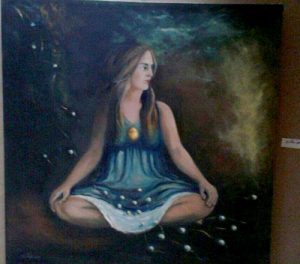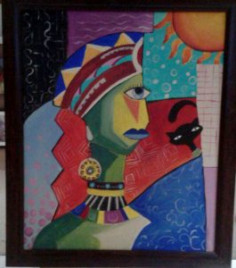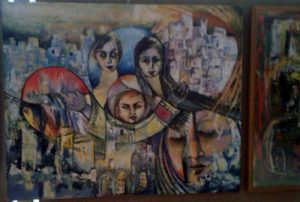 وجاءت لوحة الفنانة الشابة جمانة شجاع بعنوان “أمل” لتستبشر من خلالها خيرا للمستقبل مركزة ضمنها على رموز الطفولة والألوان السابحة على سطح اللوحة بلمسات ريشة عريضة بأسلوب تعبيري.