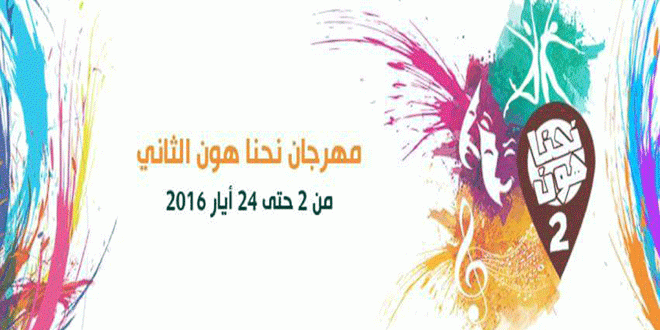 تقيم جمعية نحنا الثقافية مهرجان نحنا هون الثانى برعاية مديرية المسارح والموسيقا فى وزارة الثقافة وذلك فى الثانى من أيار القادم حتى الرابع والعشرين منه بمشاركة فرق الجمعية الموسيقية والمسرحية والفنية.