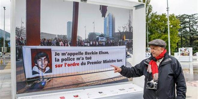 أعلنت السلطات المختصة في مدينة جنيف جنوب غرب سويسرا اليوم رفضها سحب صورة من معرض فوتوغرافي يبدو فيها متظاهرون يحملون رئيس النظام التركي مسوءولية مقتل الفتى بركين الوان الامر الذي اثار غضب تركيا.