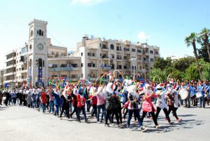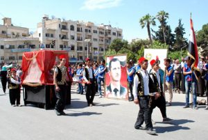 نظم فرع اتحاد شبيبة الثورة في حماة اليوم كرنفالاً شبيبياً شعبياً في ساحة العاصي بمركز مدينة حماة احتفاء بأعياد نيسان.