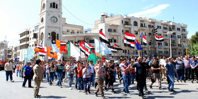 ونوه أمين فرع حماة لحزب البعث العربي الاشتراكي مصطفى سكري في كلمة خلال فعاليات الكرنفال بدور الشباب السوري الذي أثبت انتماءه الوطني الراسخ فهو يعد طاقة خلاقة لإعمار بلده ومساعدته في تجاوز محنته وتحقيق مصالحة محلية شاملة مؤكداً أن سورية ستبقى عصية على الأعداء بفضل صمود شعبها وبسالة الجيش العربي السوري وحكمة قيادتها.