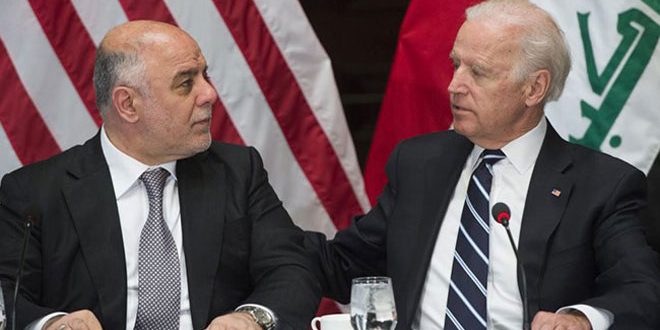 بحث نائب الرئيس الأمريكي جو بايدن خلال لقائه في بغداد اليوم رئيس الوزراء العراقي حيدر العبادي التطورات السياسية والأمنية والاقتصادية في العراق.