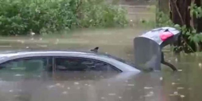 وهطلت أمطار غزيرة على البلدة بلغ منسوبها 19 سنتيمترا في أقل من ساعة ما سبب الفيضانات.