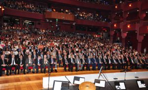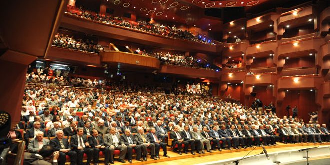 بمناسبة عيد العمال العالمي أقام المكتب التنفيذي للاتحاد العام لنقابات العمال اليوم احتفالاً مركزياً على مسرح الأوبرا في دار الأسد للثقافة والفنون بدمشق تحت عنوان “وطن بنيناه بعرقنا .. نحميه بدمائنا”.