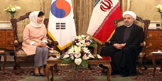 دعا الرئيس الإيراني حسن روحاني والرئيسة الكورية الجنوبية بارك كون هيه لتكثيف الجهود لتعزيز التعاون الثنائي بين البلدين في مختلف المجالات الاقتصادية والتجارية والعمل على إرساء السلام والاستقرار في شبه الجزيرة الكورية والعالم معلنين معارضتهما إنتاج أسلحة الدمار الشامل.