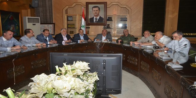 محافظ حلب الدكتور محمد مروان علبي شدد على ضرورة رفع سوية الأداء وتوحيد جهود جميع المديريات الخدمية والعمل بروح الفريق الواحد وسرعة التحرك عند حدوث الطوارئء لإنقاذ المصابين والقيام بالخطوات العملية الكفيلة بتقديم كل عون ممكن للأهالي المتضررين جراء الإرهاب.
