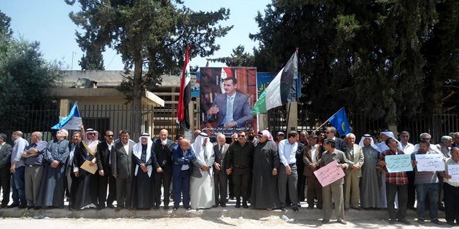 وقفة تضامنية في حماة مع أهالي حلب في وجه الهجمة الإرهابية التي يتعرضون لها
