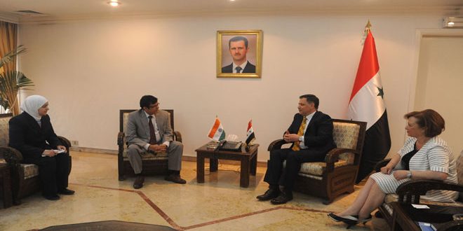 بحث وزير التعليم العالي الدكتور “محمد عامر المارديني” مع السفير الهندي بدمشق “مان موهان بانوت” اليوم علاقات التعاون بين البلدين في مجال التعليم العالي والبحث العلمي.