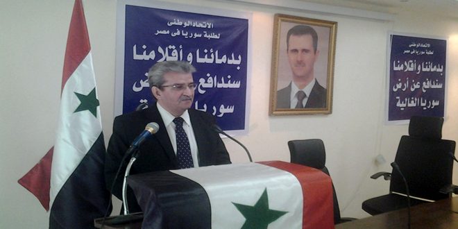 من جهتها قالت داليا المحرز في كلمة باسم طلبة سورية في مصر: إن “أجساد شهدائنا حررت الوطن من رجس الاحتلال ونحن اليوم على ثقة تامة بأن النصر تكتبه سورية” مضيفة: “نعاهد الله بأن نكون مشاريع شهداء فداء للوطن”.
