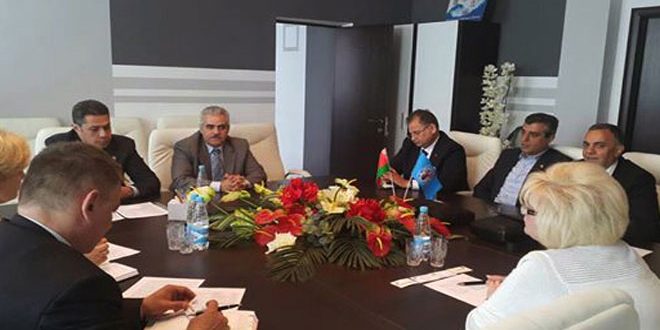 بحث وفد اقتصادي سوري يزور جمهورية بيلاروس مع عدد من مديري الشركات والمؤسسات الصناعية والمقاولات مجالات التعاون الصناعي والتجاري وإقامة مشاريع مشتركة وخطوط إنتاج تجميع منتجات في سورية تمهيدا لإقامة مصانع متكاملة والمساهمة في عملية إعادة الإعمار.