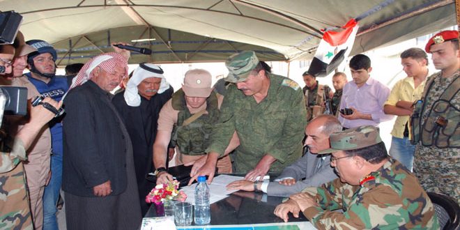 وأعرب الأهالي عن “ارتياحهم ودعمهم للجهود التي تبذلها مختلف الأطراف للوصول إلى المصالحة الشاملة على مستوى المحافظة والوطن” مؤكدين “استعدادهم للوقوف إلى جانب الجيش العربي السوري للتصدي للإرهابيين وطردهم من المنطقة وتقديم جميع التسهيلات التي تحافظ على الأمن والاستقرار في القرية”.