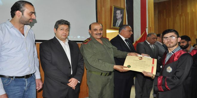 حضر حفل التكريم محافظ حمص طلال البرازي والدكتور محمد عيسى أمين فرع الجامعة لحزب البعث العربي الاشتراكي واللواء أكرم بصو قائد شرطة المحافظة وعدد من أعضاء قيادة فرع الجامعة لحزب البعث ورئيس فرع نقابة المعلمين بالجامعة وعمداء الكليات وذوي الطلبة.