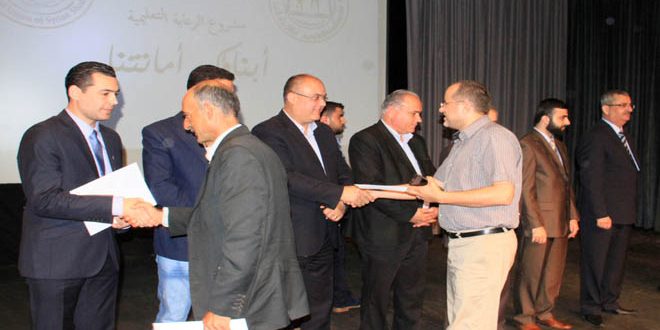 بمناسبة الذكرى السنوية الأولى لإطلاقه مشروع الرعاية التعليمية لأبناء الشهداء والجرحى وللعسكريين في طرطوس “أبناؤكم أمانتنا” كرم فرع الاتحاد الوطني لطلبة سورية في طرطوس اليوم أسر 38 شهيدا و45 معلما متطوعا في إطار المشروع وذلك خلال حفل في المركز الثقافي بالمدينة.