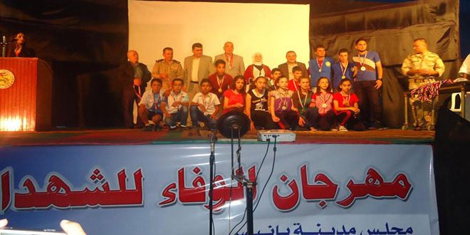 انطلقت اليوم على مسرح الهواء الطلق في مدينة بانياس فعاليات مهرجان الوفاء للشهداء والجرحى الذي تنظمه فرقة طائر الفينيق المسرحية المكلفة البرنامج الوطني للتوثيق للشهداء والجرحى في محافظة طرطوس بالتعاون مع مجلس مدينة بانياس وذلك على الكورنيش البحري للمدينة.