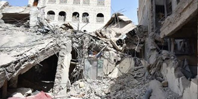 وكان قتل أمس 13 يمنيا بينهم خمسة مسعفين وأكثر من 10 جرحى جراء غارات للعدوان السعودي استهدفت موقع قرن الدمم في حرف سفيان بمحافظة عمران.