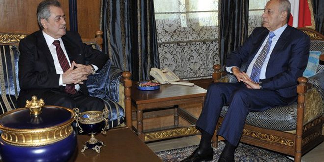 بحث رئيس مجلس النواب اللبناني نبيه بري مع سفير سورية في لبنان علي عبدالكريم اليوم الأوضاع في المنطقة والتحديات الحقيقية التي تواجهها والتي يتصدرها الإرهاب ومخاطره.