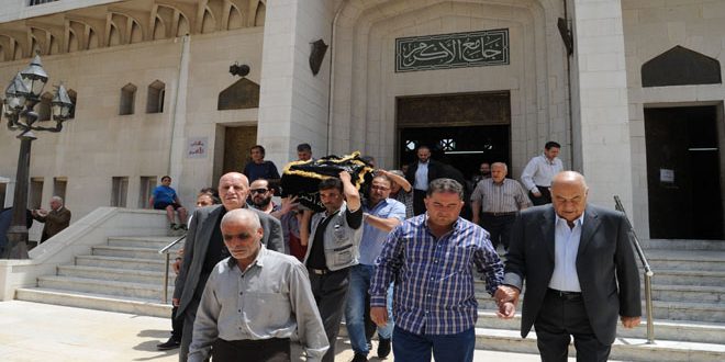 وكان خلدون المالح توفي في الخامس والعشرين من الشهر الماضي عن عمر ناهز الثامنة والسبعين عاماً إثر مرض عضال في أحد مستشفيات لوس انجلوس بالولايات المتحدة الأمريكية ونقل جثمانه إلى دمشق تلبية لرغبته ووصيته في أن يدفن في وطنه الذي أحبه وأعطاه الكثير.