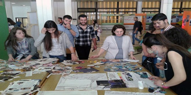 ينفذ مجموعة من أساتذة وطلاب كليتي الفنون الجميلة والهندسة المعمارية بجامعة تشرين في المكتبة المركزية بالجامعة ورشة عمل فنية لتصميم لوحة فنية لجامعة تشرين بتقنية الكولاج واخراجها عن طريق استعمال مواد تالفة مختلفة وذلك في أول تجربة لهم من نوعها أمام الجمهور.