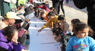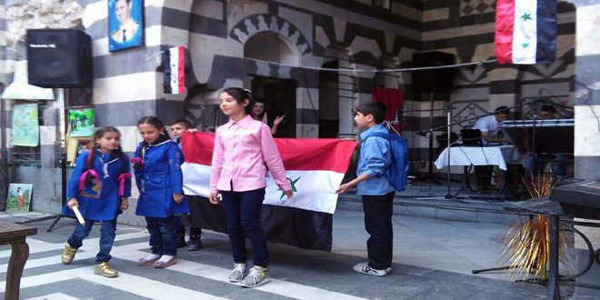 تضامنا مع أهالي مدينة حلب الصامدة في وجه الإرهاب أقام أطفال مدرسة “وليد الخوري” للتعليم الأساسي في حي الحميدية بحمص القديمة اليوم فعالية فنية في مطعم بيت الآغا التراثي بحي بستان الديوان تحت عنوان “من أجل الطفولة نحيا وتحيا حلب”.