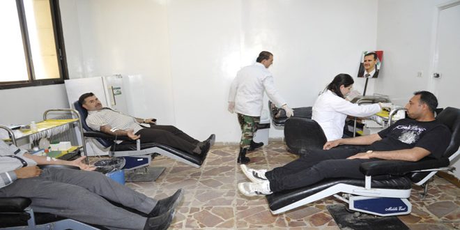 تقديرا لبطولاتهم وتضحياتهم في سبيل الوطن شارك أكثر من 600 عامل وموظف في وزارة الصناعة والمديريات والشركات التابعة لها اليوم بحملة تبرع بالدم دعما لجرحى الجيش العربي السوري وذلك في بنك الدم بالمزة كما زار وفد من الوزارة جرحى الجيش في مشفى يوسف العظمة بالمزة.