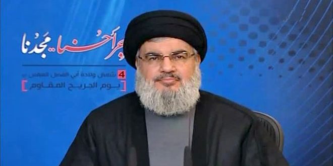 وأضاف السيد نصر الله أن الولايات المتحدة الامريكية تخطط للتواجد في سورية ولو بالقرار السياسي من خلال الجنود والضباط الذين أرسلتهم إلى شمالها بحجة محاربة تنظيم “داعش” الإرهابي لافتا إلى أن هذا التنظيم الإرهابي هو الوسيلة التي تستخدم خدمة للاهداف الأمريكية والصهيونية والقضاء على أي إمكانية مقاومة في المنطقة.