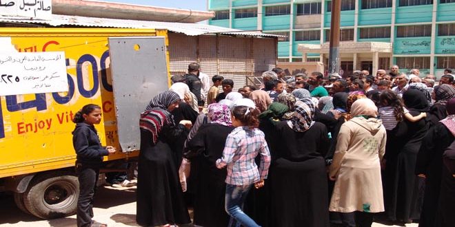 خزن درعا توزع ثلاثة أطنان من السكر على المواطنين بسعر 225 ليرة للكيلو