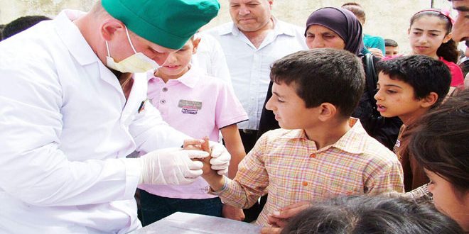 وتم على هامش توزيع المساعدات تقديم خدمات صحية وأدوية من قبل فريق طبي روسي على المرضى والأطفال وكبار السن المقيمين في المركز الذي تقيم فيه