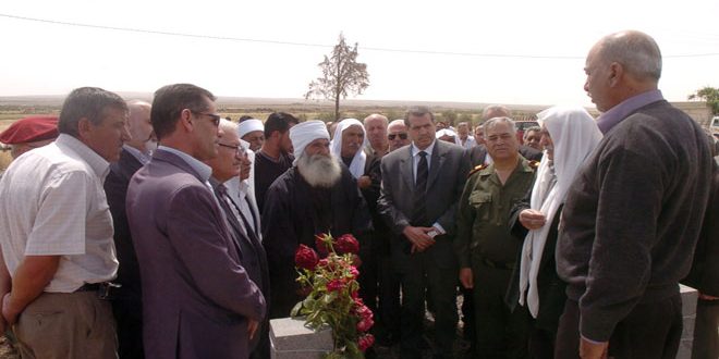 من جهته أكد محافظ السويداء الدكتور عاطف النداف أن سورية منتصرة ببطولات وتضحيات أبنائها ودماء شهدائها الذي قدموا أرواحهم الطاهرة في سبيل عزة ورفعة الوطن فرسموا بدمائهم الزكية ملامح النصر القريب الذي يجسده بواسل الجيش العربي السوري في ارجاء الوطن لتطهيره من رجس التنظيمات الإرهابية.