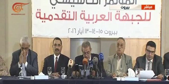 وأكدت الأحزاب في بيان لها تلاه نجاح واكيم الناطق الرسمي باسم الجبهة التي اتخذت بيروت مقرا أساسيا لها وتونس مقرا ثانيا .. أن انتصار الشعب السوري على الإرهاب والمؤامرة الدولية التي يتعرض لها سيؤسس لمشروع عربي موحد والقضاء على كل البؤر الإرهابية في الوطن العربي مبينا أن الجبهة تؤكد على أهمية الحل السوري السوري للأزمة دون تدخلات خارجية حفاظا على وحدة سورية “بكل أطيافها الاجتماعية والسياسية الوطنية”.