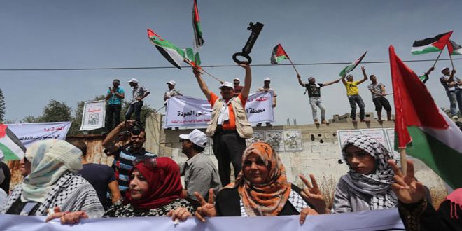 شهدت الأراضي الفلسطينية المحتلة عددا من المسيرات والفعاليات الشعبية لإحياء الذكرى الثامنة والستين لنكبة الشعب الفلسطيني والتأكيد على التمسك بمقاومة الاحتلال حتى استرجاع كامل الحقوق المغتصبة من قبل كيان الاحتلال الإسرائيلي وفي مقدمتها حق العودة.
