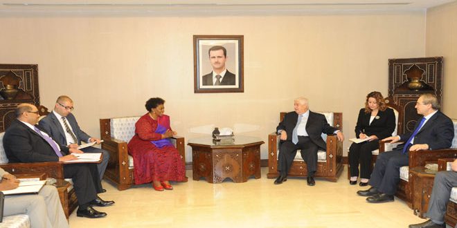 استقبل نائب رئيس مجلس الوزراء وزير الخارجية والمغتربين وليد المعلم اليوم نومانديا مفيكيتو نائب وزيرة العلاقات والتعاون الدولي في جمهورية جنوب افريقيا والوفد المرافق.
