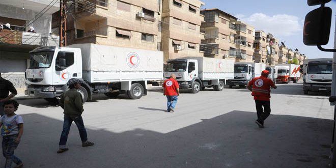 ولفت رئيس مجلس مدينة قدسيا محمد البوشي إلى أن “المساعدات الإنسانية سيتم توزيعها بناء على تسلسلية القوائم الأسمية المسجلة لدى الهلال الأحمر العربي السوري” مبينا أن “كمية المساعدات التي أدخلت اليوم تكفي جميع الفقراء والمحتاجين في المدينة”.