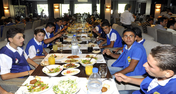 أقامت وزارة السياحة اليوم مأدبة غداء للمشاركين في المخيم التطوعي الذي يقيمه فرع ريف دمشق لاتحاد شبيبة الثورة بالتعاون مع محافظة الريف من أبناء وأسر الشهداء بالمحافظة وذلك في مدينة الشباب بالمزة.