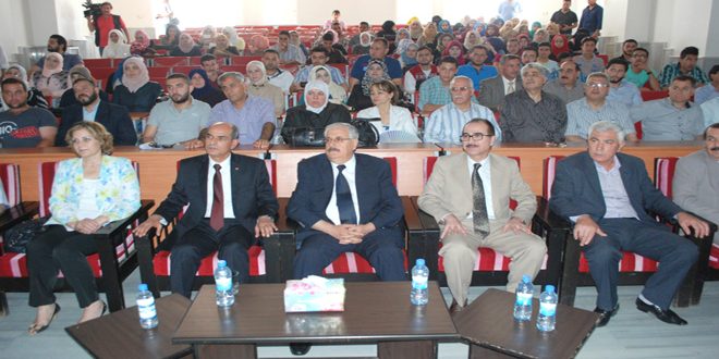 حضر الاحتفالية التي أقيمت على مدرج كلية الآداب والعلوم الإنسانية بحي جنوب الملعب بمدينة حماة الدكتور غسان خلف محافظ حماة وأعضاء قيادة فرع حماة وأمين شعبة التعليم العالي لحزب البعث ونواب رئيس الجامعة وفعاليات حزبية ورسمية وطلابية.