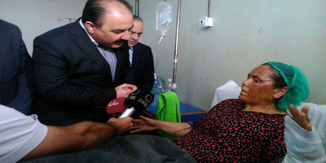 بتوجيه من السيد الرئيس بشار الأسد زار الأمين القطري المساعد لحزب البعث العربي الاشتراكي هلال الهلال جرحى التفجيرات الإرهابية التي