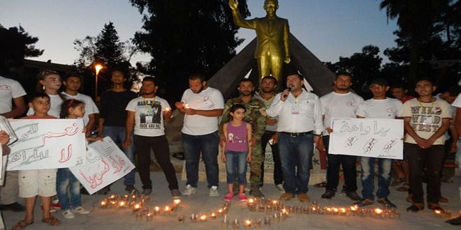 وفي نهاية الفعالية أوقد المشاركون الشموع كرسالة تضامن ومحبة من أبناء الحسكة لذوي الشهداء والجرحى وللتأكيد على أن سورية ستبقى واحدة موحدة ولن يتمكن أحد النيل منها.