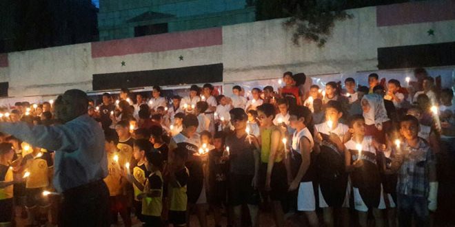 نظم نادي النصر التابع لفرع القنيطرة للاتحاد الرياضي العام مساء أمس وقفة تضامنية في مقر النادي بمساكن برزة تمت خلالها إضاءة شموع تخليدا لأرواح شهداء جبلة وطرطوس الذين قضوا في التفجيرات الإرهابية الاثنين الماضي.