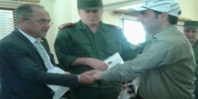 من جهته لفت رئيس فرع نقابة أطباء السويداء الدكتور كمال عامر إلى أهمية الدور الوطني لجرحى جيشنا الباسل في اجتثاث جذور الإرهاب وصون عزة وكرامة الوطن.