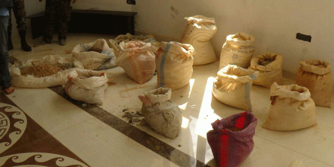 وذكر مصدر في المحافظة في تصريح لمراسل “سانا” أنه بعد عملية متابعة ورصد ضبطت وحدة من مجموعات الدفاع الشعبية في كمين بقرية العفينة بالريف الجنوبي سيارة تحوي عددا من قذائف “ار بي جى” وحشوات وسبطانة مدفع عيار 23 وأكثر من 70 كغ من مادة ال”تي ان ت” المتفجرة كانت متجهة إلى الإرهابيين في البادية الشرقية.