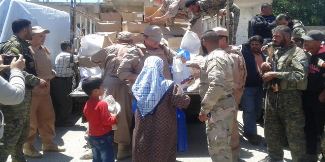 وقدمت روسيا خلال الفترات الماضية كميات كبيرة من المساعدات الإنسانية إلى عشرات البلدات بمختلف المحافظات السورية وقامت بتوزيعها بالتعاون والتنسيق مع الجهات المعنية في سورية لضمان وصولها إلى مستحقيها وعدم استيلاء الإرهابيين عليها ولا سيما أن المساعدات التي تحاول المنظمات الدولية إرسالها غالباً ما تستولي عليها التنظيمات الإرهابية.