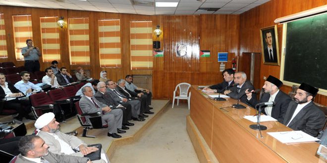 نظمت كلية الشريعة بجامعة دمشق بالتعاون مع كليتي الاقتصاد والحقوق والقاضي الشرعي الأول في وزارة العدل ندوة علمية اليوم تحت عنوان”التضخم النقدي وأثره في الديون” على مدرج نقابة المعلمين في مبنى رئاسة الجامعة.