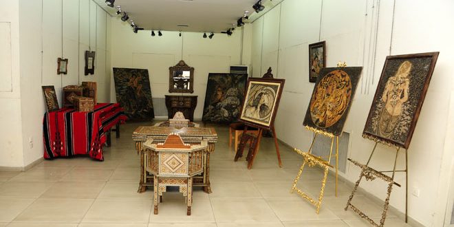 ويضم المعرض الذي يستمر لأسبوع منتجات للحرفيين خلدون المسوتي وفؤاد عربش حيث قدم الأول مجموعة من أعمال الفسيفساء الرخامية ضمت لوحات لأشكال مختلفة من أشخاص وقصص خيالية وبعض المشغولات من الرخام والأحجار الكريمة بينما قدم عربش مجموعة من قطع الأثاث المنزلي المشغول بموزاييك الخشب المطعم بالعظم والصدف إضافة لصناديق للزينة ومرايا وغيرها.