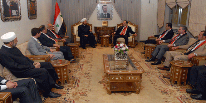 وأشار المفتي حسون خلال لقائه اليوم وفدا من رابطة الارادة السورية الامريكية “سوا” إلى أن ما يقوم به ابناء سورية في المغترب يؤكد عمق انتمائهم لوطنهم الأم وأن السوريين حيثما حلوا سيبقون متشبثين بجذورهم ووطنهم وسفراء مدافعين عنه.