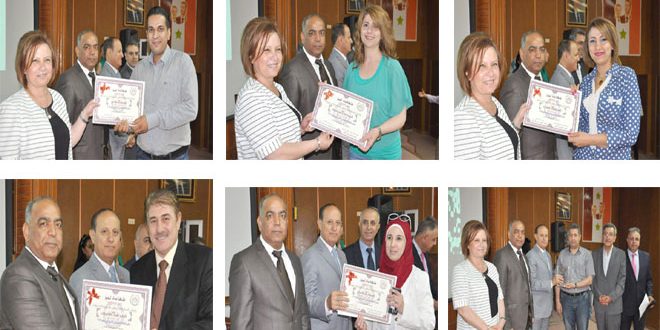 معاون وزير التعليم العالي لشؤون البحث العلمي الدكتورة سحر الفاهوم أكدت ضرورة تكريم المتميزين في عملهم لأنهم ساهموا في صمود الجامعة ونجاحها وقوتها منوهة بالدور الكبير الذي لعبته جامعة البعث خلال الفترة الماضية واستقطابها لأغلب الدوائر الحكومية من أجل استمرار عجلة الحياة في مدينة حمص.